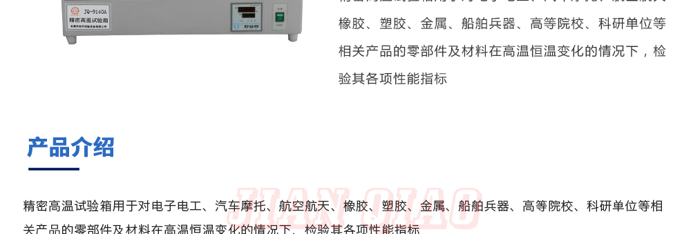 用途:精密高溫試驗箱用于對電子電工、汽車摩托、航空航天、橡膠、塑膠、金屬、船舶兵器、高等院校、科研單位等相關產品的零部件及材料在高溫恒溫變化的情況下,檢驗其各項性能指標