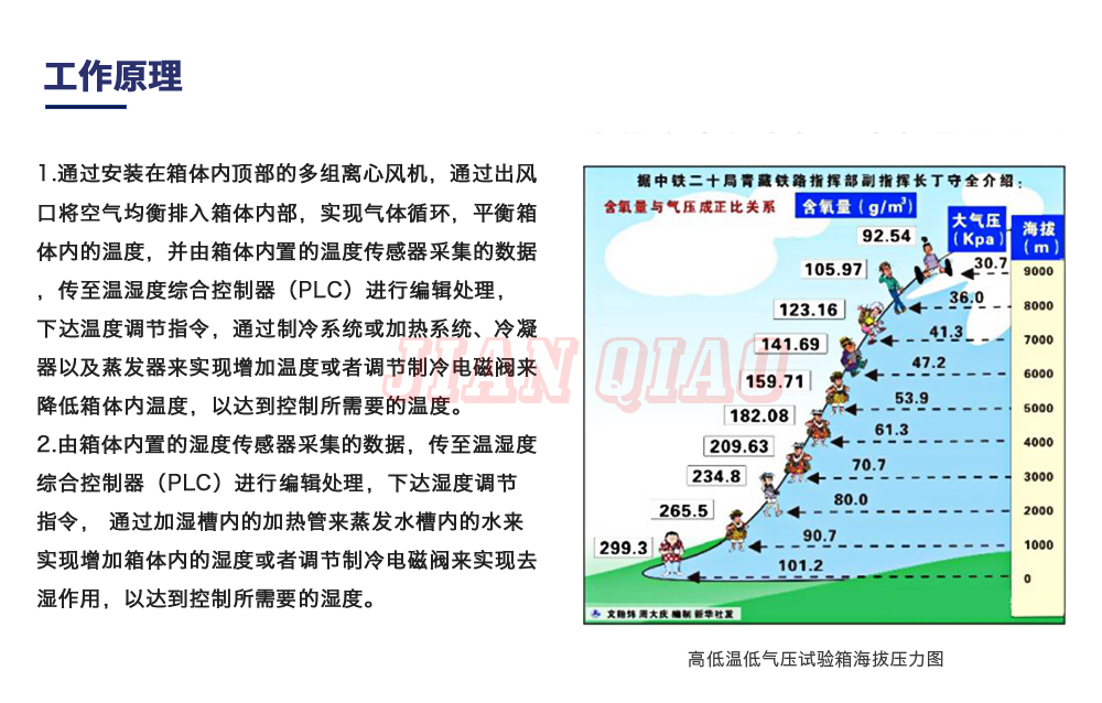•  高低溫低氣壓試驗箱也稱為:低氣壓試驗機、低氣壓(高度)試驗箱、高低溫濕熱低氣壓試驗箱,適用于電工、電子產品及其他產品、零部件及材料進行低氣壓試驗的環境試驗箱設備,可滿足電工電子產品及軍用裝備等環境試驗 - 高溫試驗、低溫試驗、溫度變化試驗、低氣壓試驗、溫度高度試驗、低溫/低氣壓綜合試驗、高溫/低氣壓綜合試驗,適用于電工、電子、儀器儀表及其它產品零部件及材料在高低溫交變環境下貯存、運輸、使用時的適應性試驗。