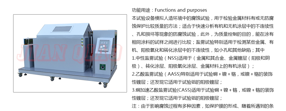 產(chǎn)品型號(hào):按需選型 品牌:劍 喬 用途:鹽霧試驗(yàn)箱可分為:溫度/濕度/鹽霧復(fù)合式試驗(yàn)機(jī),步入式鹽干濕試驗(yàn)室,步入式鹽水噴霧試驗(yàn)室,鹽水噴霧試驗(yàn)機(jī),可程式鹽水噴霧試驗(yàn)機(jī),電腦式鹽水噴霧試驗(yàn)機(jī),精密型鹽水噴霧試咨詢(xún)熱線(xiàn):13829135130