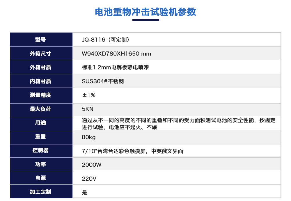 • 電池重物沖擊試驗(yàn)機(jī)