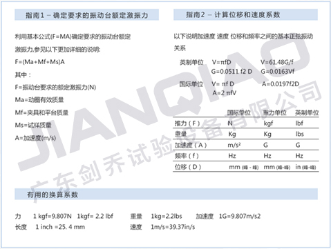 注:圖為振動試驗臺選型換算公式
