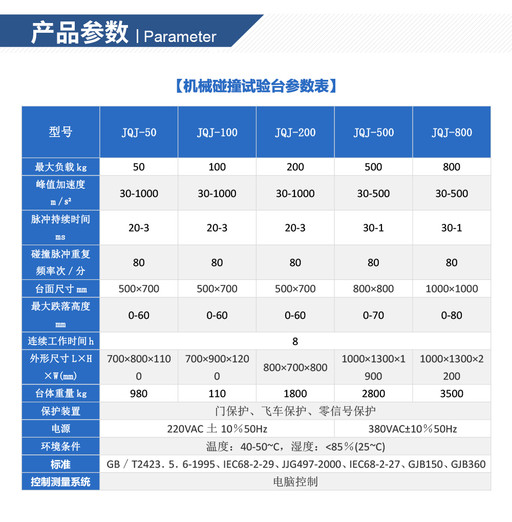 用途:機械碰撞試驗臺模擬仿真裝備及組件在使用與運輸過程中,可能遭遇的沖擊效應為主,并透過沖擊波于瞬間瞬時能量交換,分析產品承受外界沖擊環境之能力,試驗之目的在于了解其機